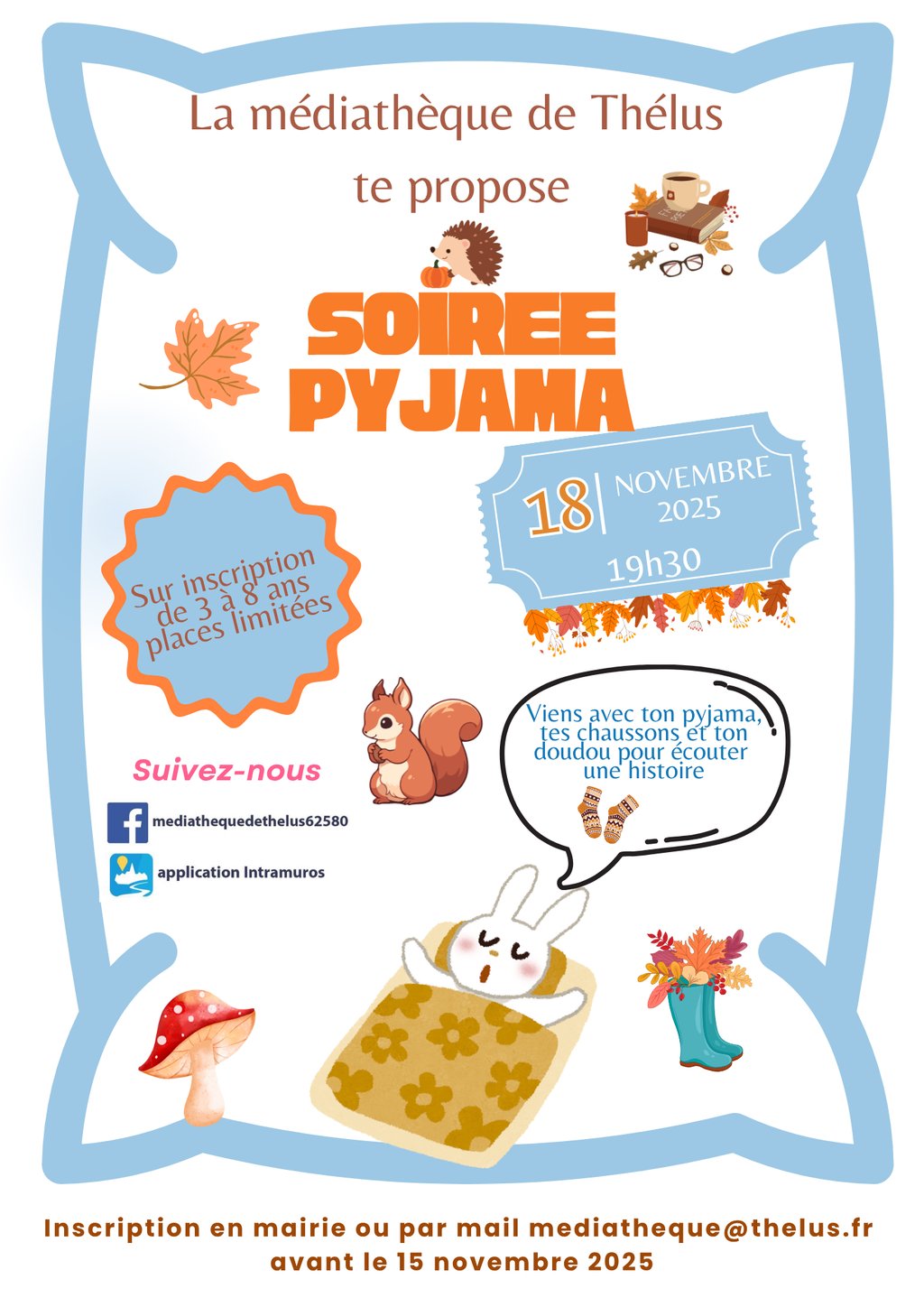 📓 Mardi 18 novembre dès 19h30 : c'est soirée pyjama à la médiathèque : 🐻