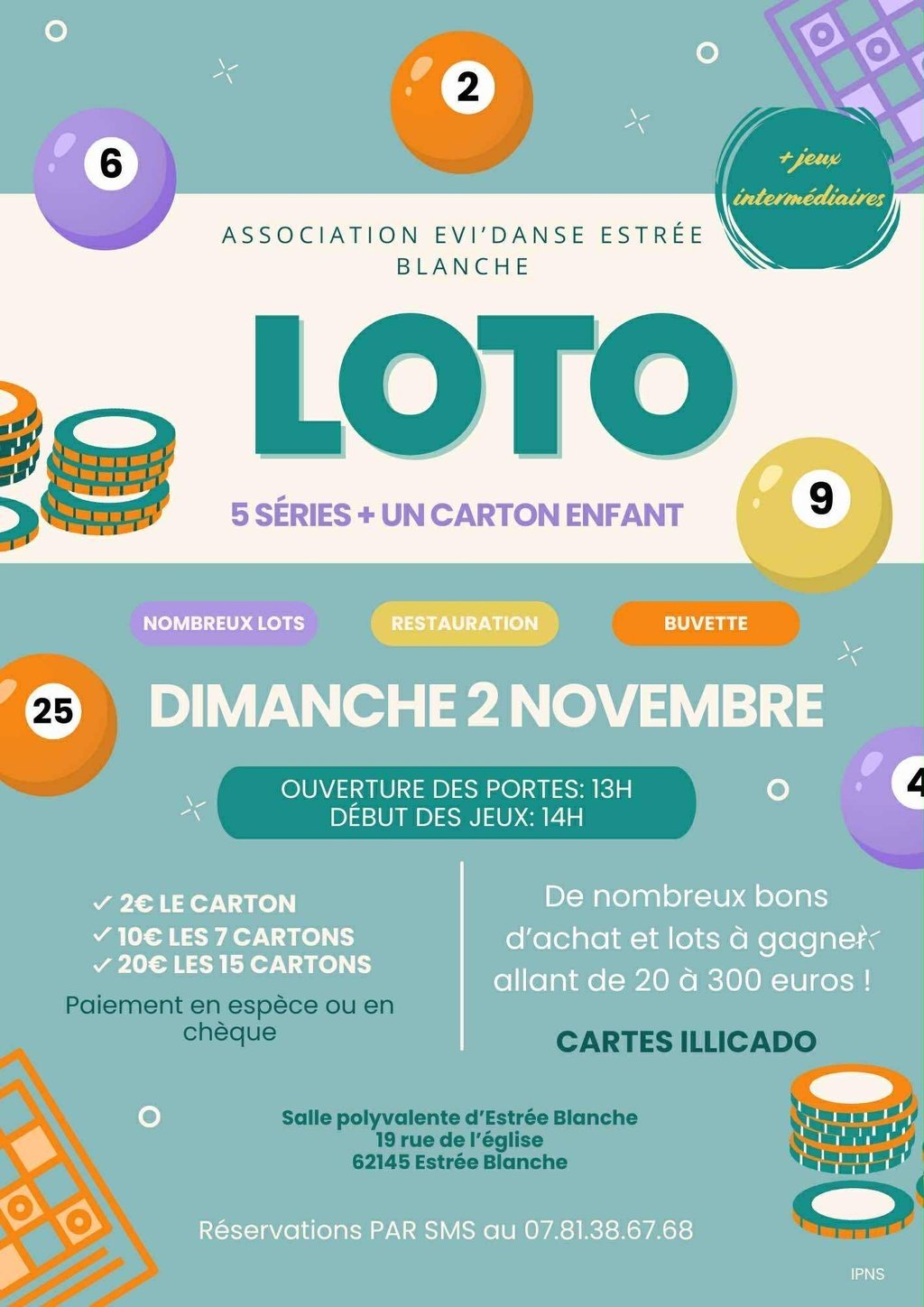 L'association Evi'danse ESTREE-BLANCHE organise un loto le dimanche 2 novembre