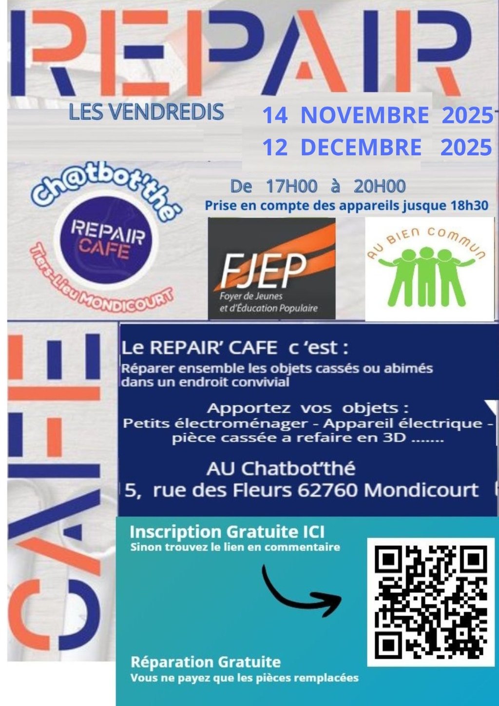 Le Repair Café est un événement participatif et convivial. Son principal objectif est d’éviter de jeter les objets du quotidien qui peuvent encore servir, en les réparant ou en apprenant à les réparer. C’est une activité de l’association FJEP de Pas en Artois.