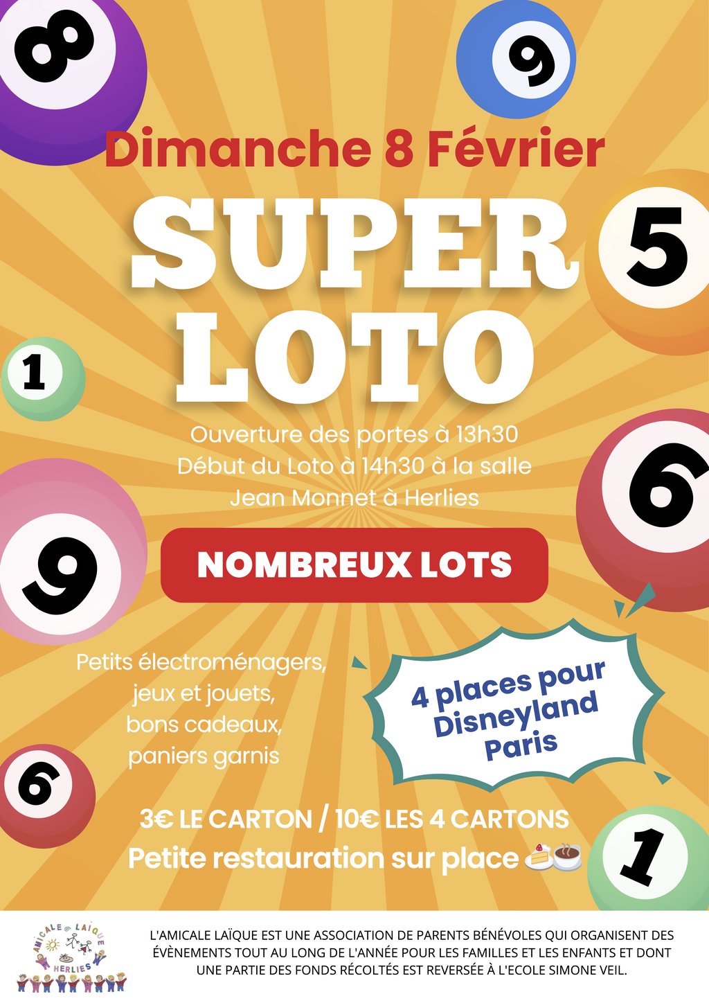 Ouverture des portes 13:30 début du loto 14:30