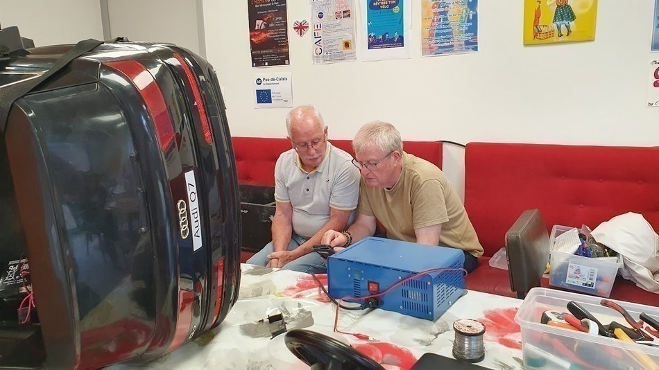 Les visiteurs restent présents et participent à la réparation avec les conseils d’un bénévole dans le but d’ancrer le réflexe de réparation.