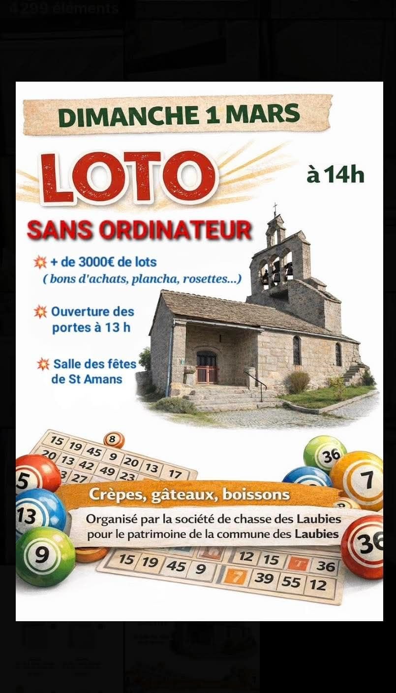Organisé par la société de chasse des Laubies pour le patrimoine de la commune des Laubies