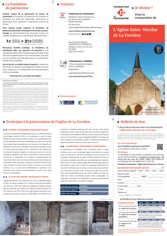 Dans le cadre de la restauration de l’église Saint Nicolas, un appel aux dons a été lancé en 2024 par le biais de la Fondation du Patrimoine.