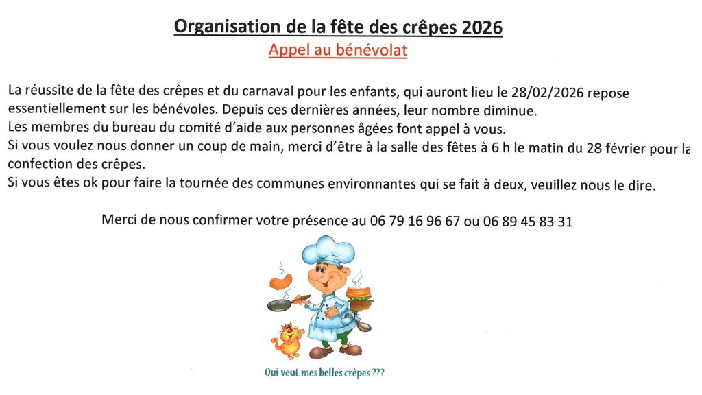Organisation de la fête des crêpes 2026 - APPEL AU BENEVOLAT