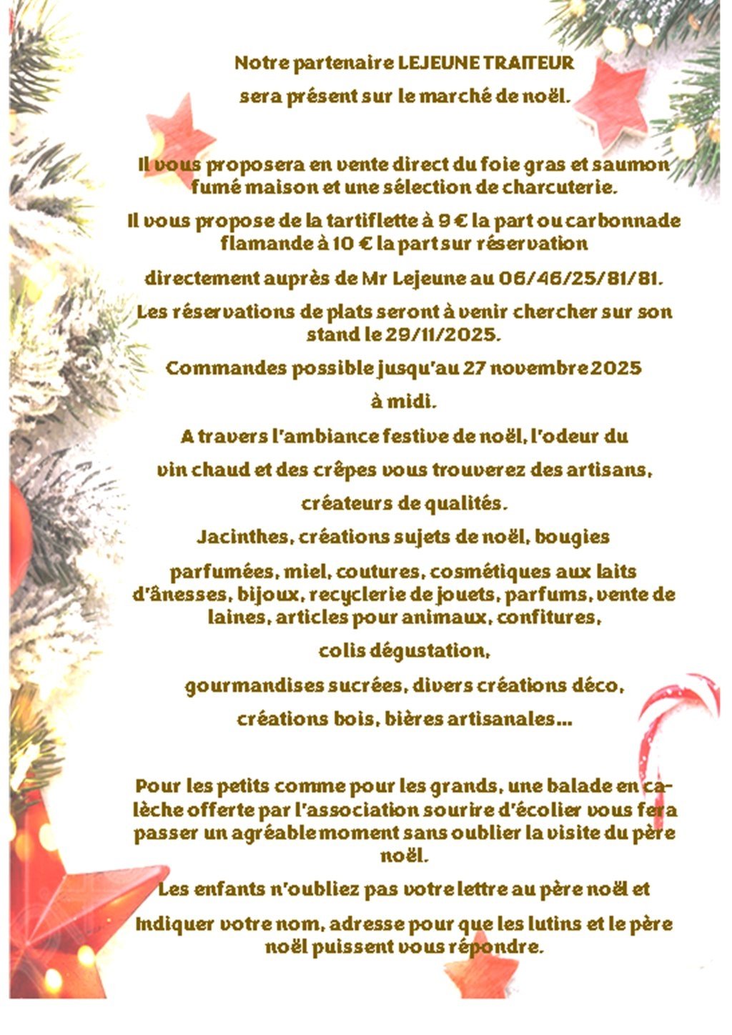 Notre partenaire LEJEUNE TRAITEUR sera présent sur le marché de Noël.