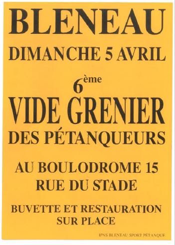 6ème vide grenier des pétanqueurs le dimanche 5 avril 2026