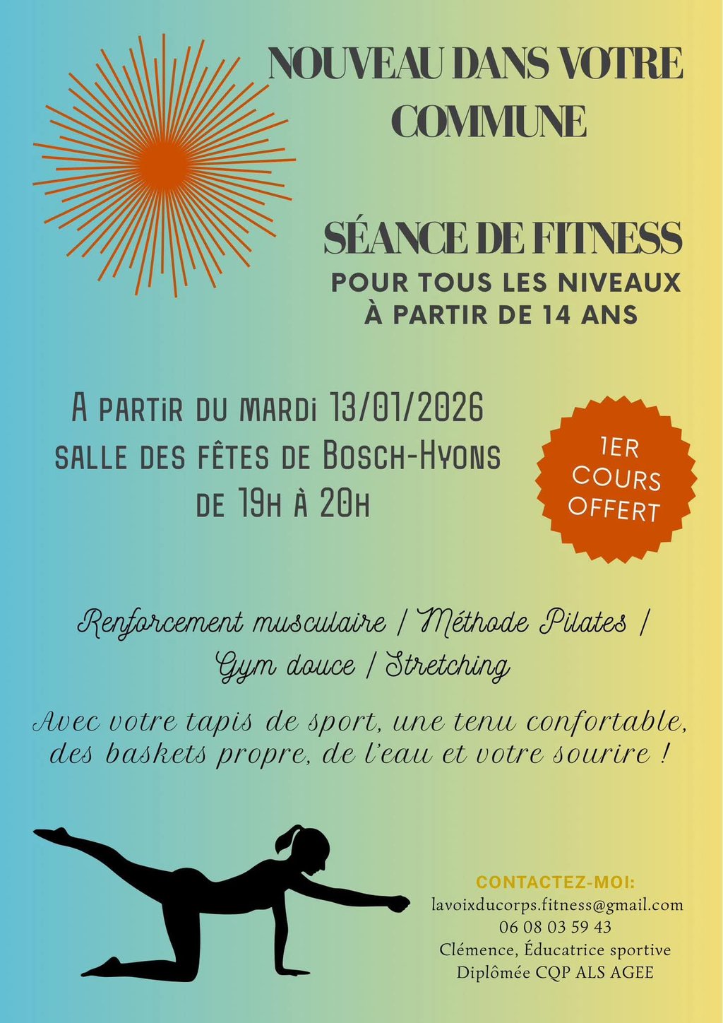 Les cours auront lieu à la salle des fêtes de Bosc-Hyons tous les mardis de 19h à 20h.