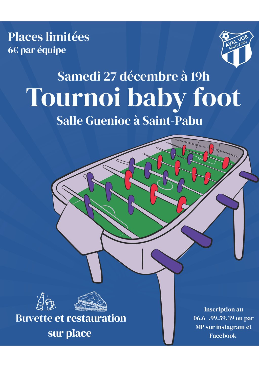 Samedi 27 décembre à 19h, tournoi de baby foot à la salle Guenioc à Saint-Pabu