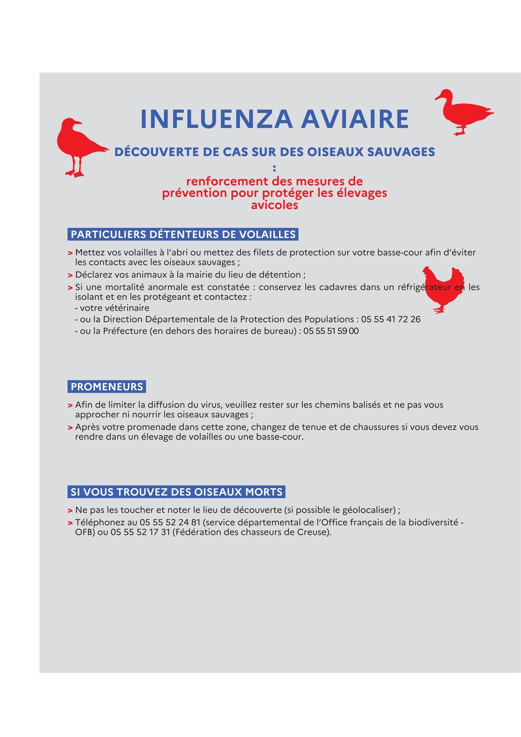 https://www.creuse.gouv.fr/Actions-de-l-Etat/Agriculture-et-alimentation/Sante-et-protection-animale/Influenza-aviaire-hautement-pathogene-Niveau-de-risque-eleve