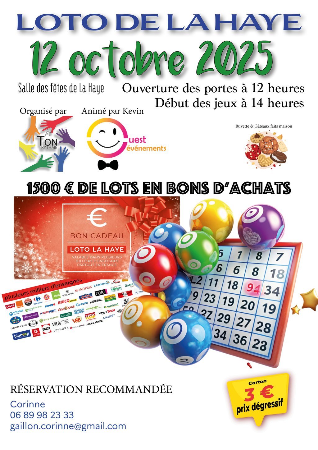 L'excitation monte à l'approche de notre Grand Loto de la Haye, organisé le dimanche 12 octobre 2025 à la Salle des Fêtes.
