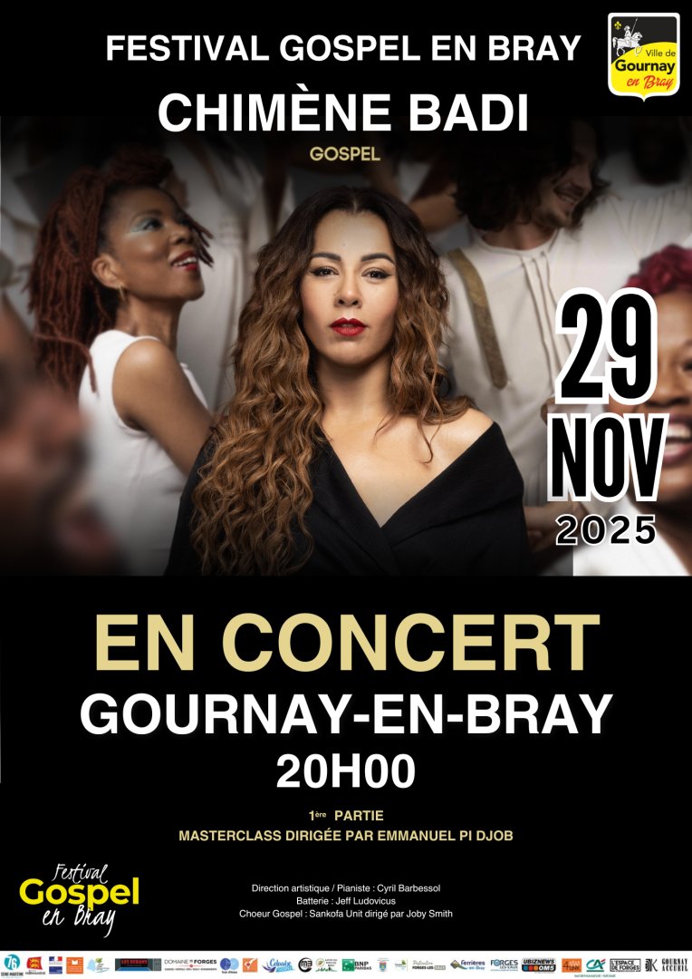 Chimène Badi proposera un concert gospel exceptionnel le samedi 29 novembre à 20h00 au gymnase de l'Aulnaie à Gournay-en-Bray. Elle sera accompagnée par le chœur Sankofa Unit. Une soirée qui promet d'être inoubliable !