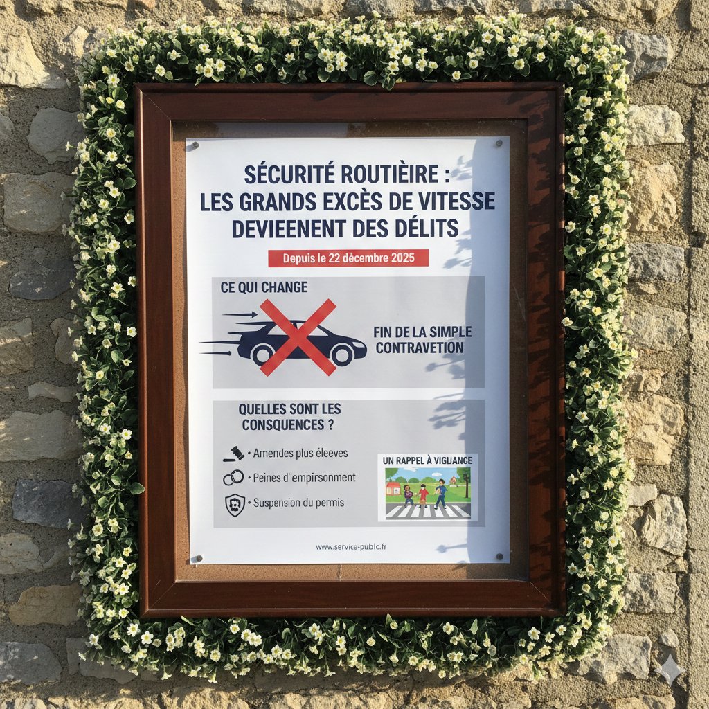La municipalité tient à rappeler que le respect des limitations de vitesse, particulièrement en zone urbaine et aux abords des écoles, est essentiel pour le bien-vivre ensemble et la sécurité des piétons, cyclistes et enfants de notre commune.