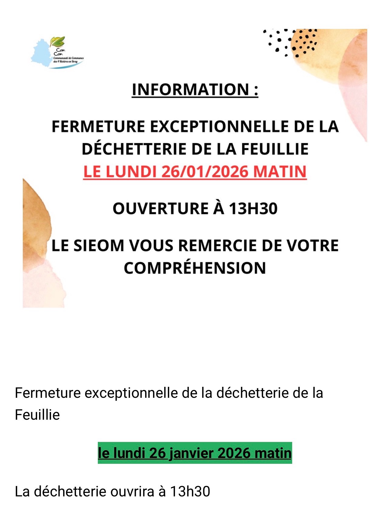 Fermeture exceptionnelle de la déchetterie de La Feuillie :