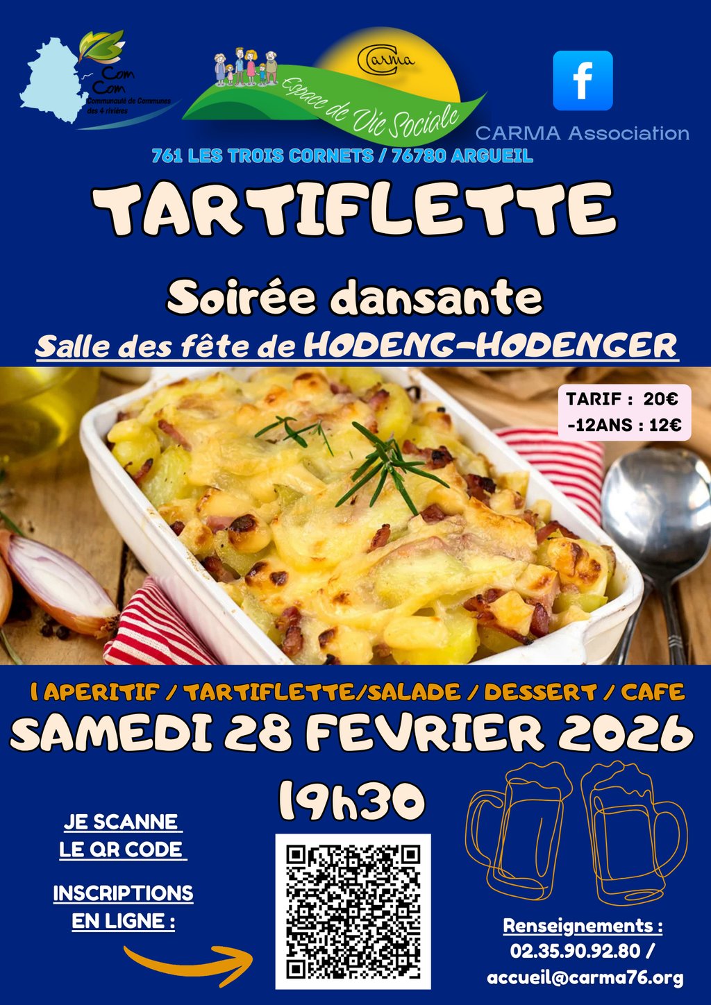 Au menu : 🍽 Apéritif | Tartiflette | Salade | Dessert | Café 🎉 Ambiance musicale garantie !