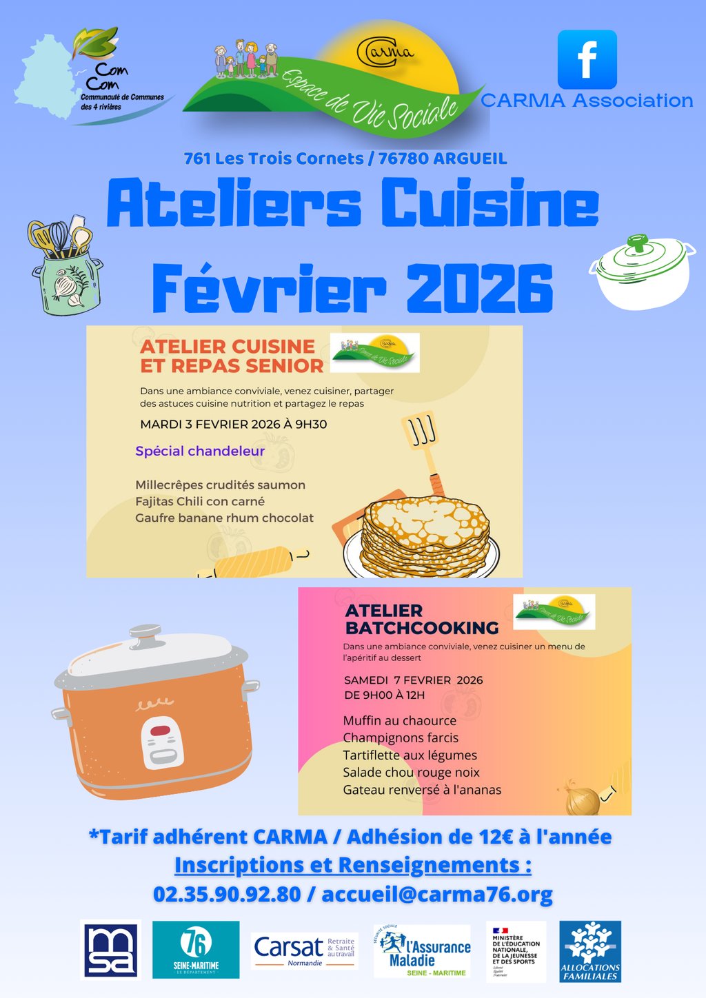 Inscriptions, Tarifs & Renseignements auprès de CARMA : 📞 02 35 90 92 80 | ✉ accueil@carma76.org