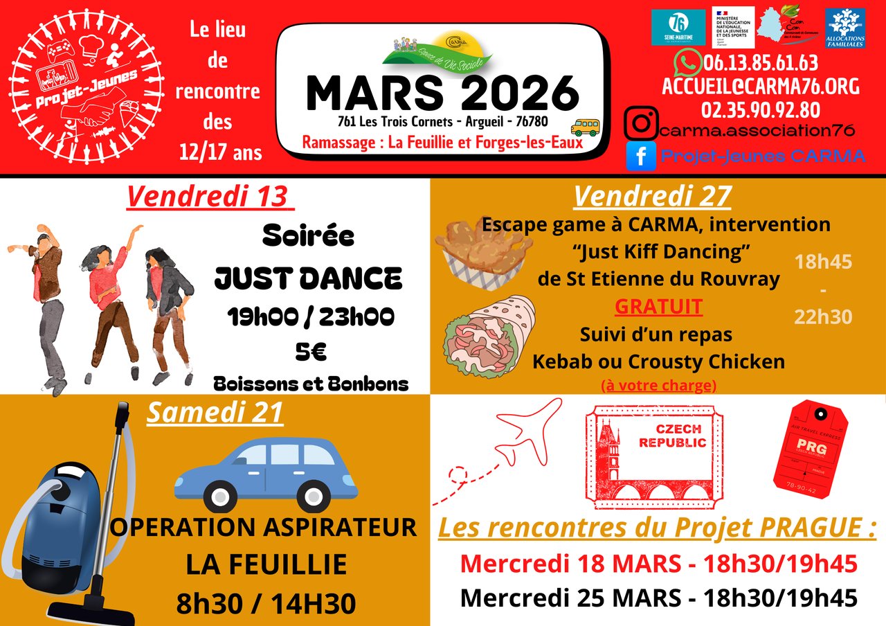 - Vendredi 13 mars | 19h–23h : Soirée Just Dance (5 € – boissons et bonbons inclus).