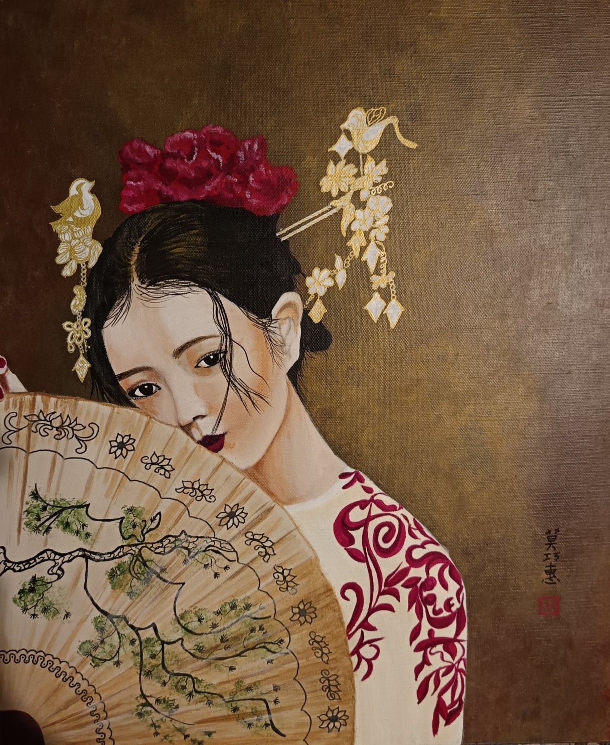 Calligraphie traditionnelle : Sa signature calligraphiée, tel un sceau personnel, scelle l'union entre ses racines et ses inspirations asiatiques.