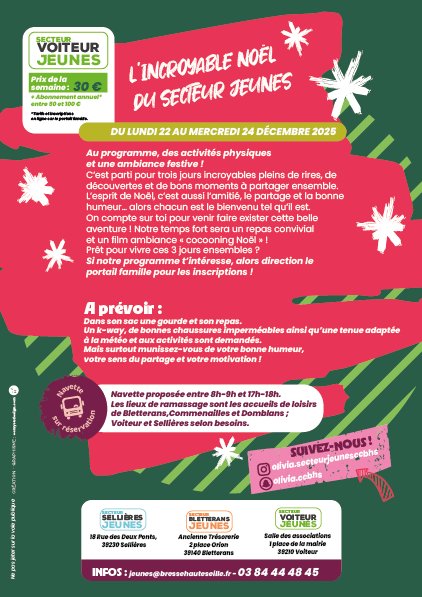 Retrouvez ici le programme du secteur jeunes de la CCBHS du 22 au 24 dĂ©cembre 2025. đ