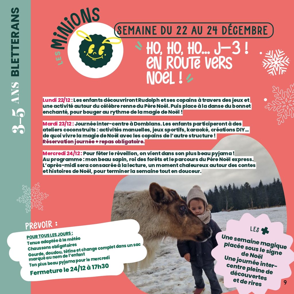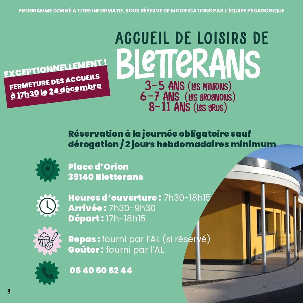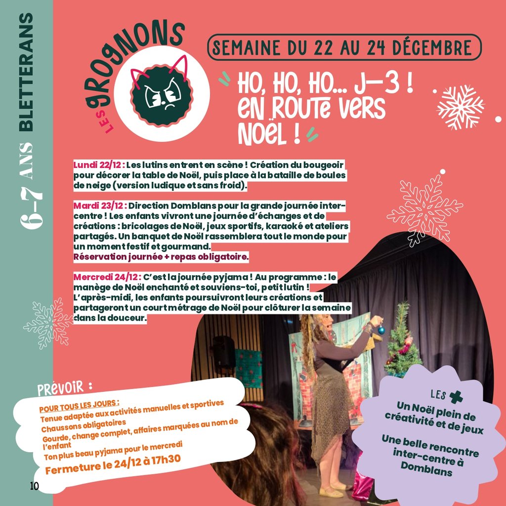 Retrouvez ici le programme des accueils de Bletterans et Domblans, du 22 au 24 dĂ©cembre 2025. đ