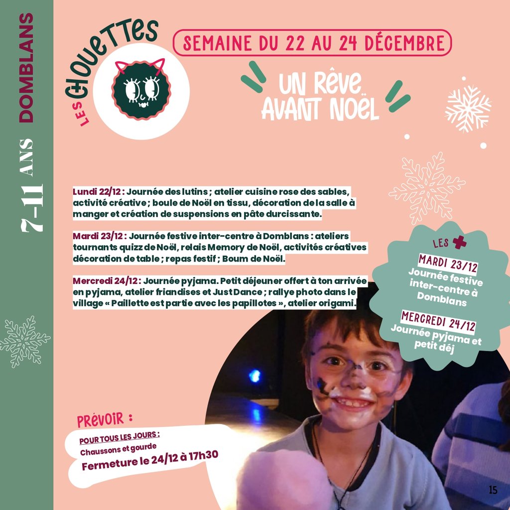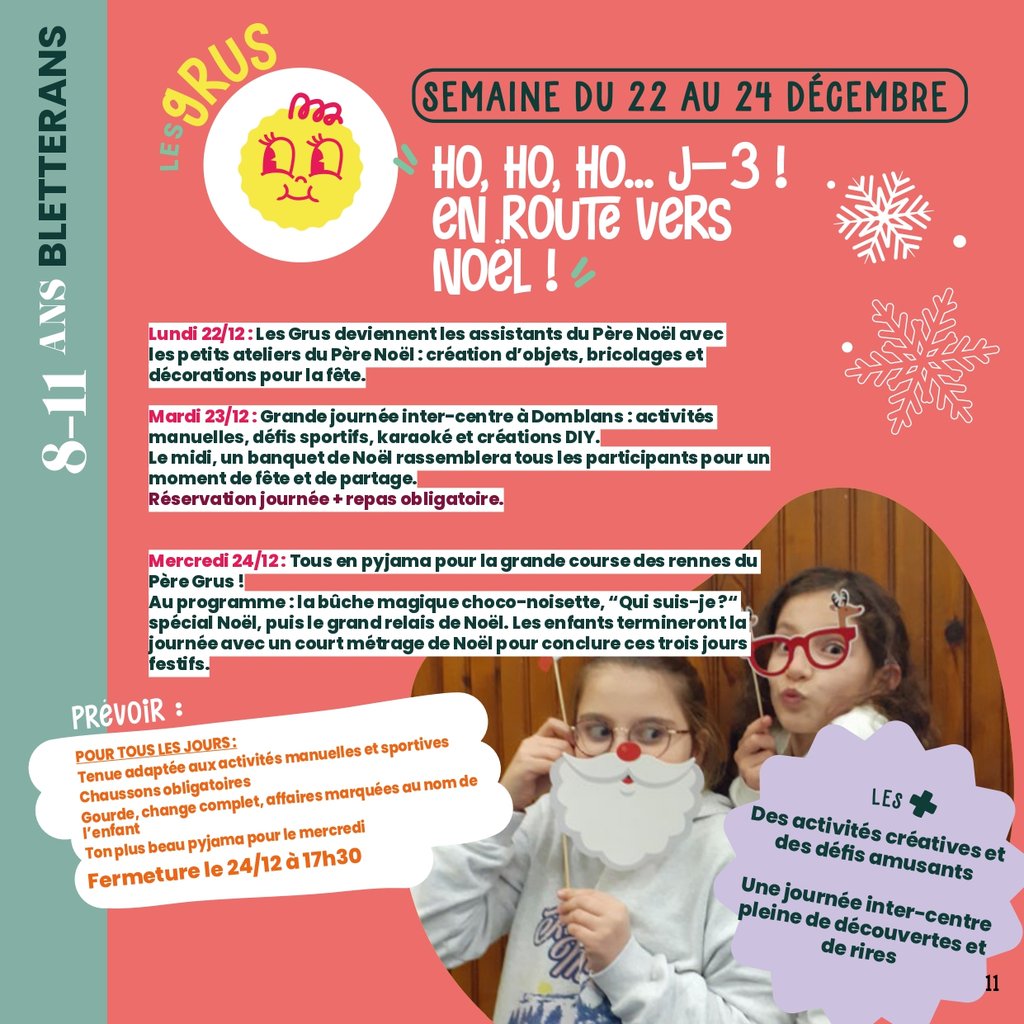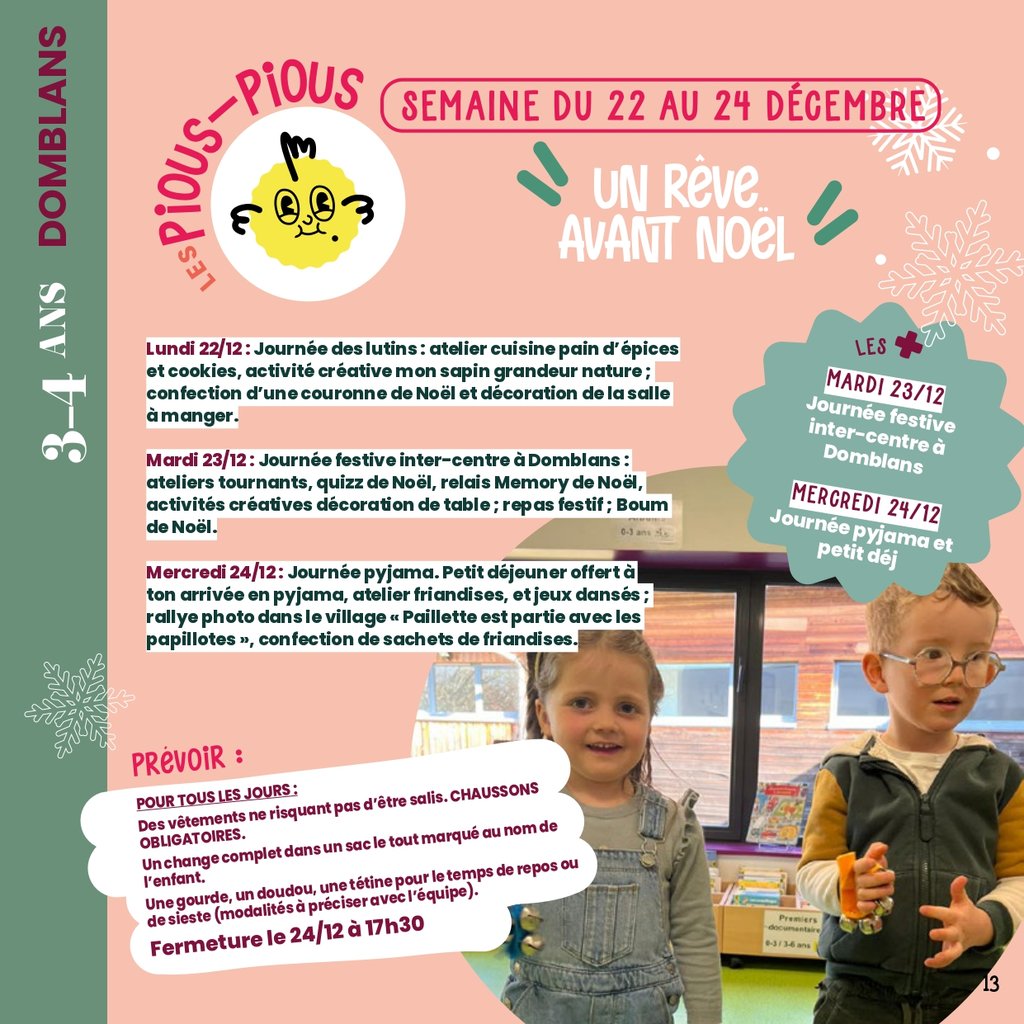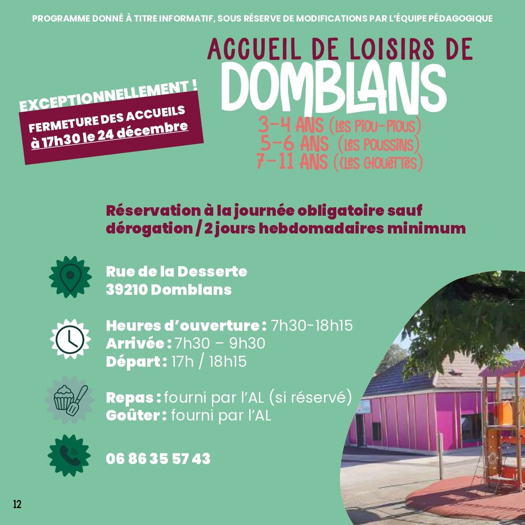 Retrouvez ici le programme des accueils de Bletterans et Domblans, du 22 au 24 dĂ©cembre 2025. đ