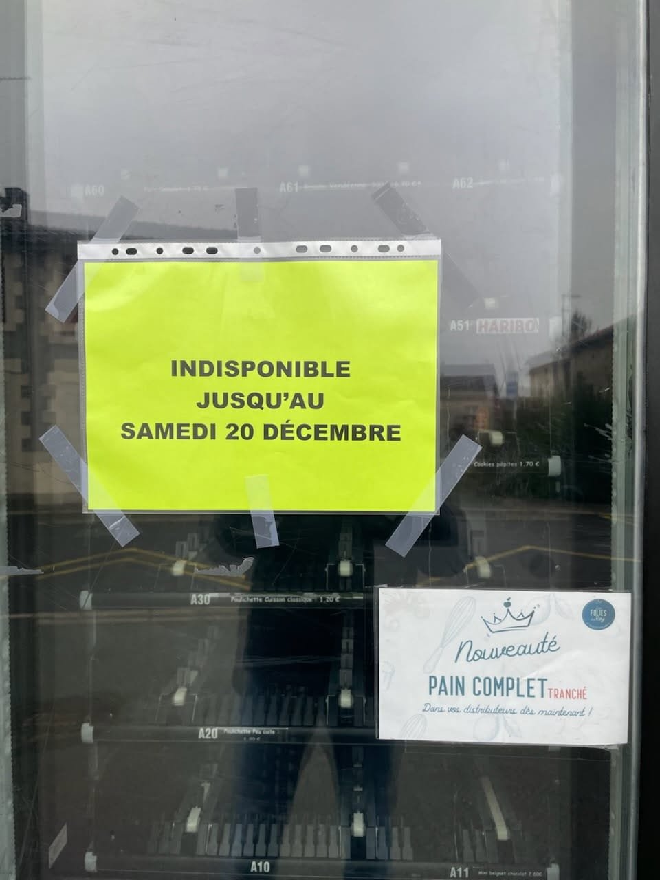 ARRET MACHINE A PAINS JUSQU'AU 20/12/25