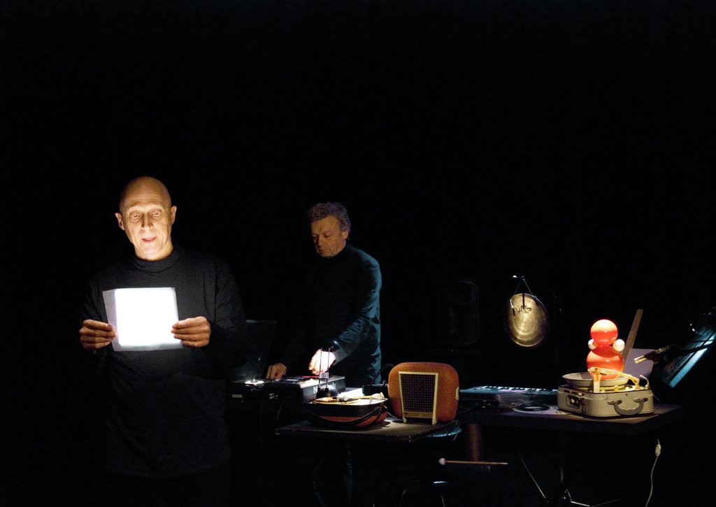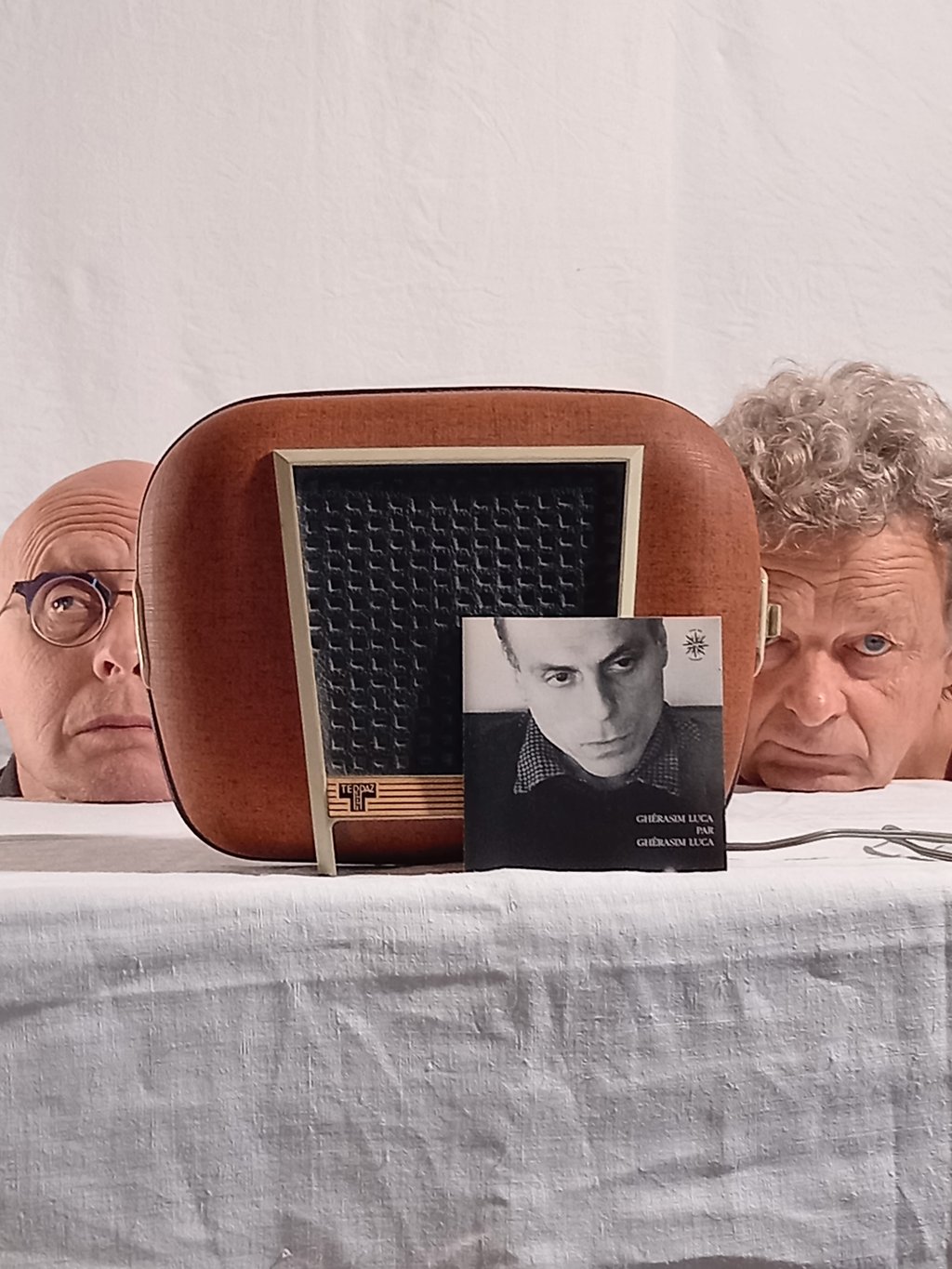 La poésie de Ghérasim Luca est une expérience poétique, sonore, musicale, corporelle, sensorielle, sensible et vivante. En habile malaxeur-dégustateur de phonèmes, de sens et de sons, le comédien chemine avec son complice dans la réinitialisation permanente de la langue bégayante de Luca parmi les disques rayés et les électrophones hors d’âge.