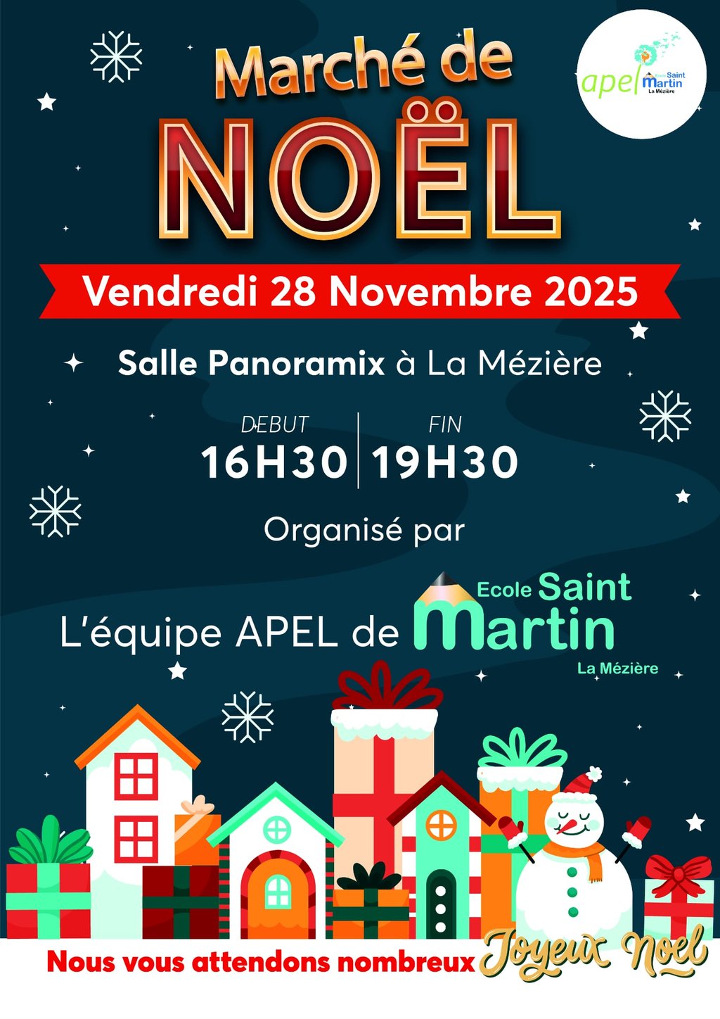 L’équipe Apel de l’école Saint-Martin a le plaisir de vous inviter à son marché de Noël 🎄✨