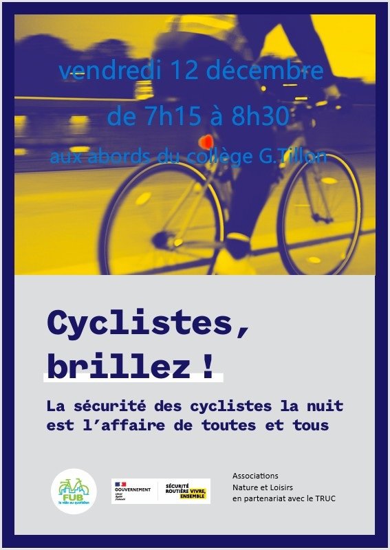 "Cyclistes, brillez !" permet de rappeler l’importance d'un bon éclairage, efficace, notamment en période hivernale.