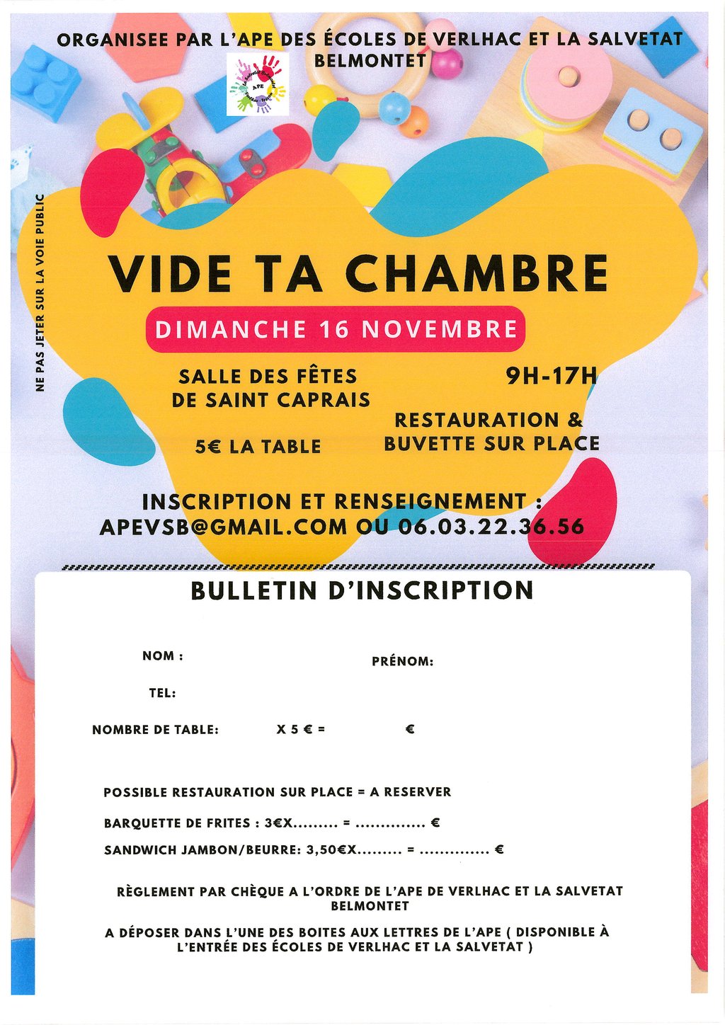 VIDE TA CHAMBRE SALLE DES FETES DE ST CAPRAIS DIMANCHE 16 NOVEMBRE