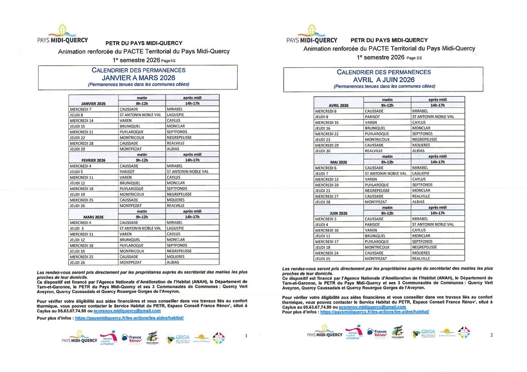 CALENDRIER DES PERMANENCES PETR DU PAYS MIDI-QUERCY
