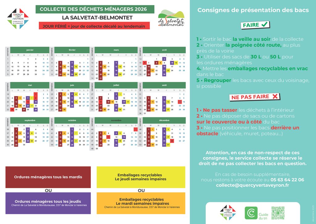 Nouveau calendrier 2026 fourni par la Communauté des Communes. Annule et remplace le précédent.