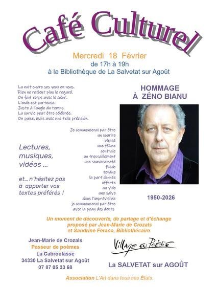 Hommage à l'immense poète Zéno Bianu parti le 7 janvier 2026