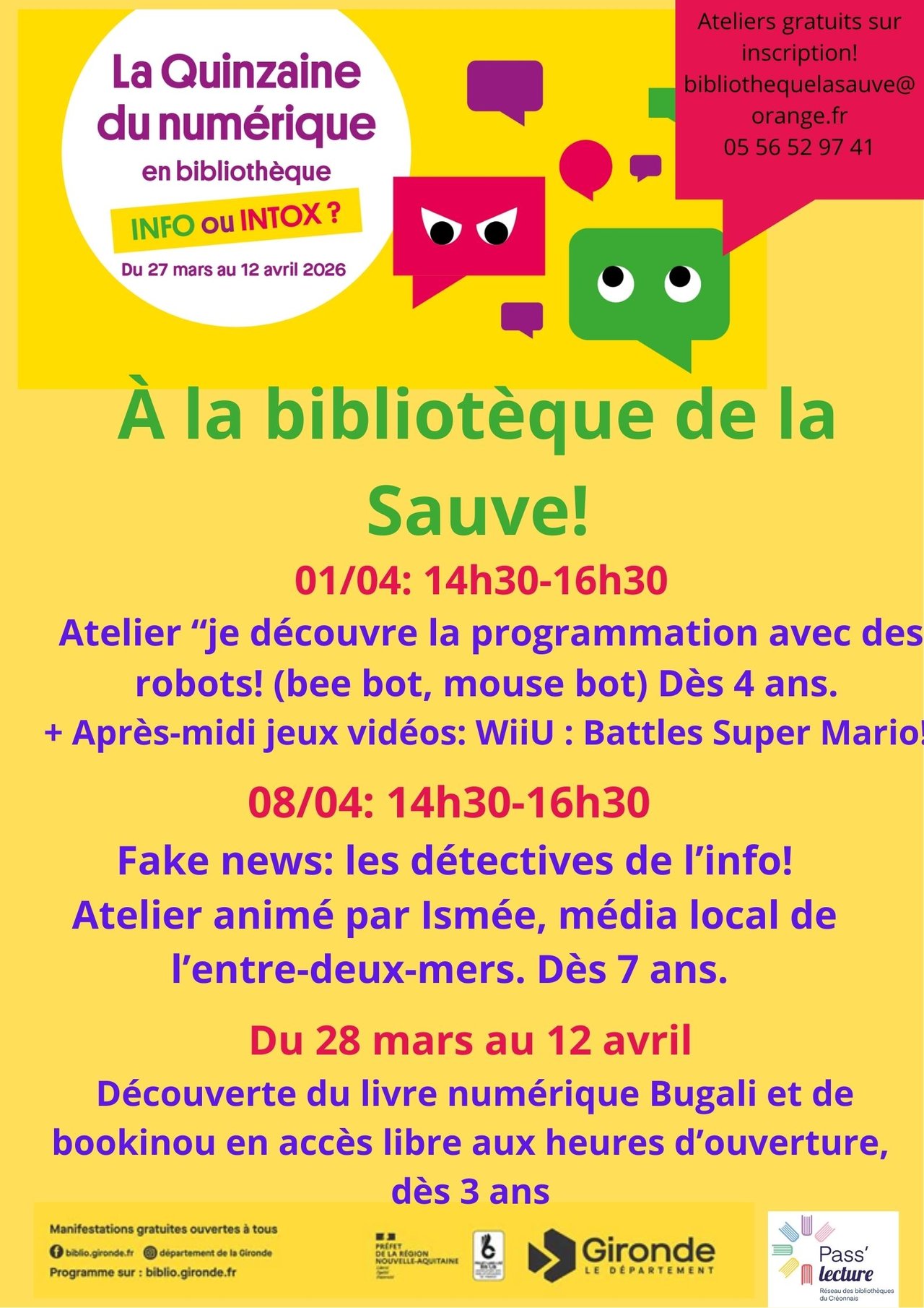Deux semaines d'ateliers numerique en gironde auxquelles participent votre réseau passe lecture et votre bibliothèque.