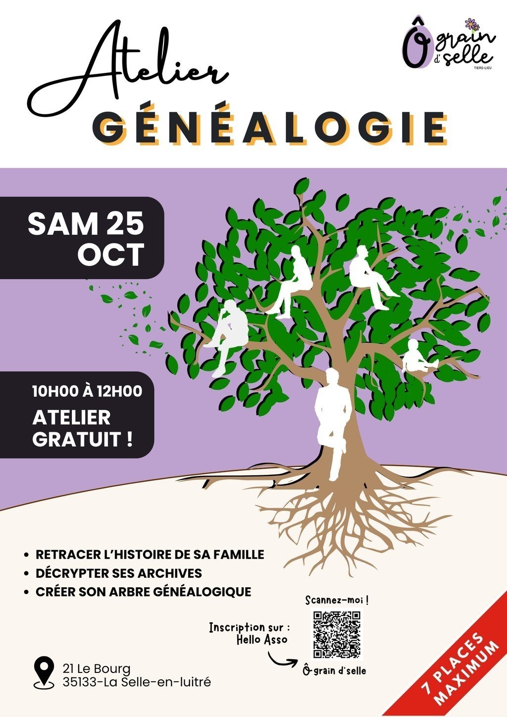 🔍 Atelier de généalogie – Venez découvrir vos racines et remonter le fil de votre histoire familiale, pas à pas. Rendez-vous Samedi 25 Octobre de 10h00 à 12h00 au Tiers-lieu !