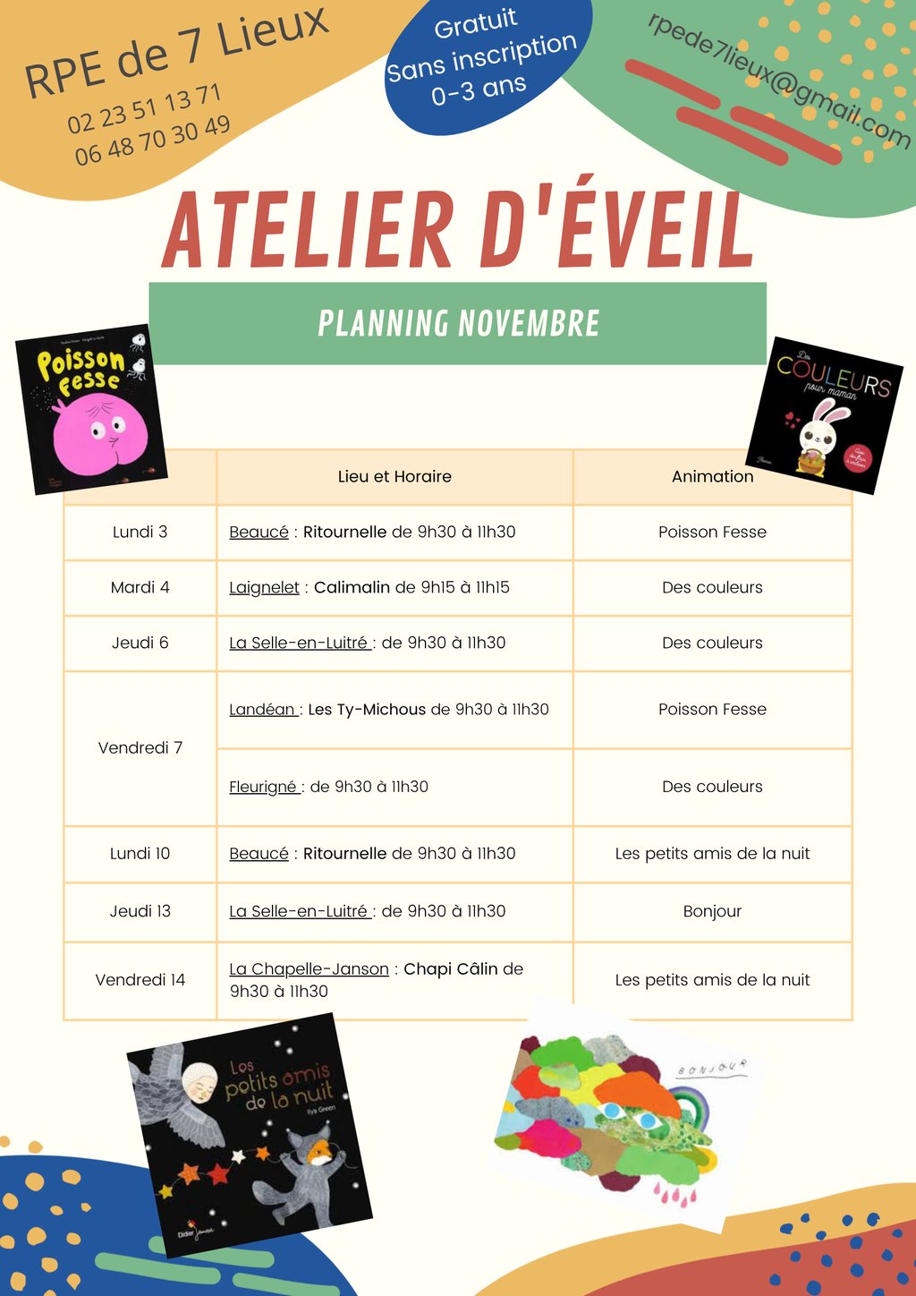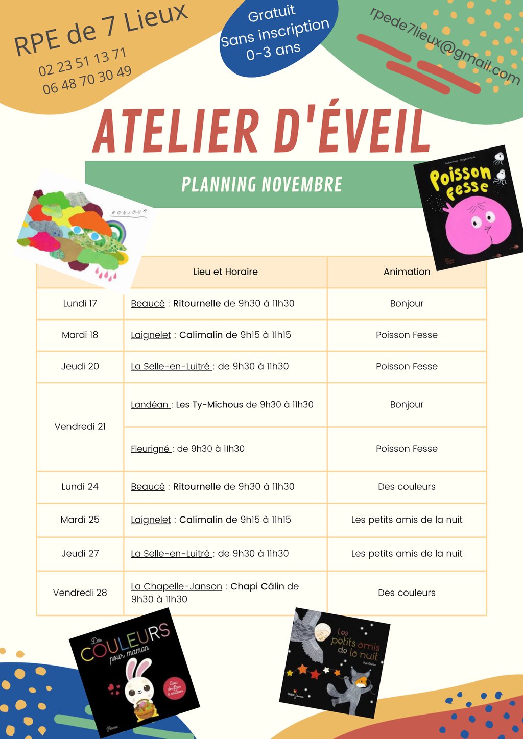 Découvrez le programme des activités proposées par le Relais Petite Enfance de 7 lieux pour le mois de novembre.