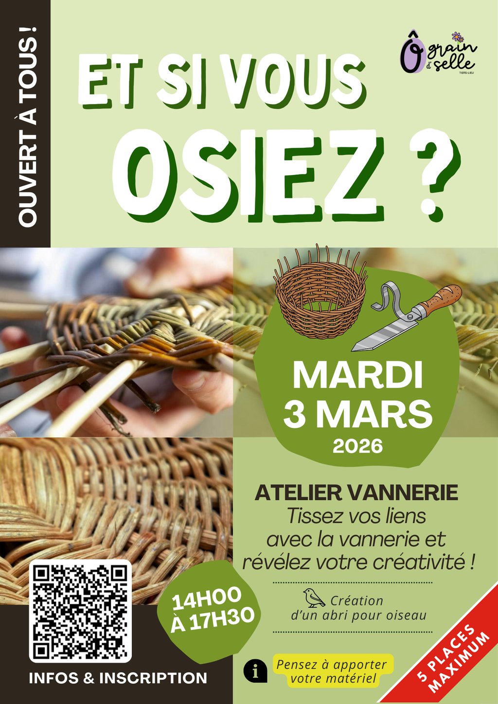 🌿 Appel aux jardiniers : Nous fournissons la matière, mais si vous avez de l'osier ou du cornouiller dans votre jardin, n'hésitez pas à en apporter !