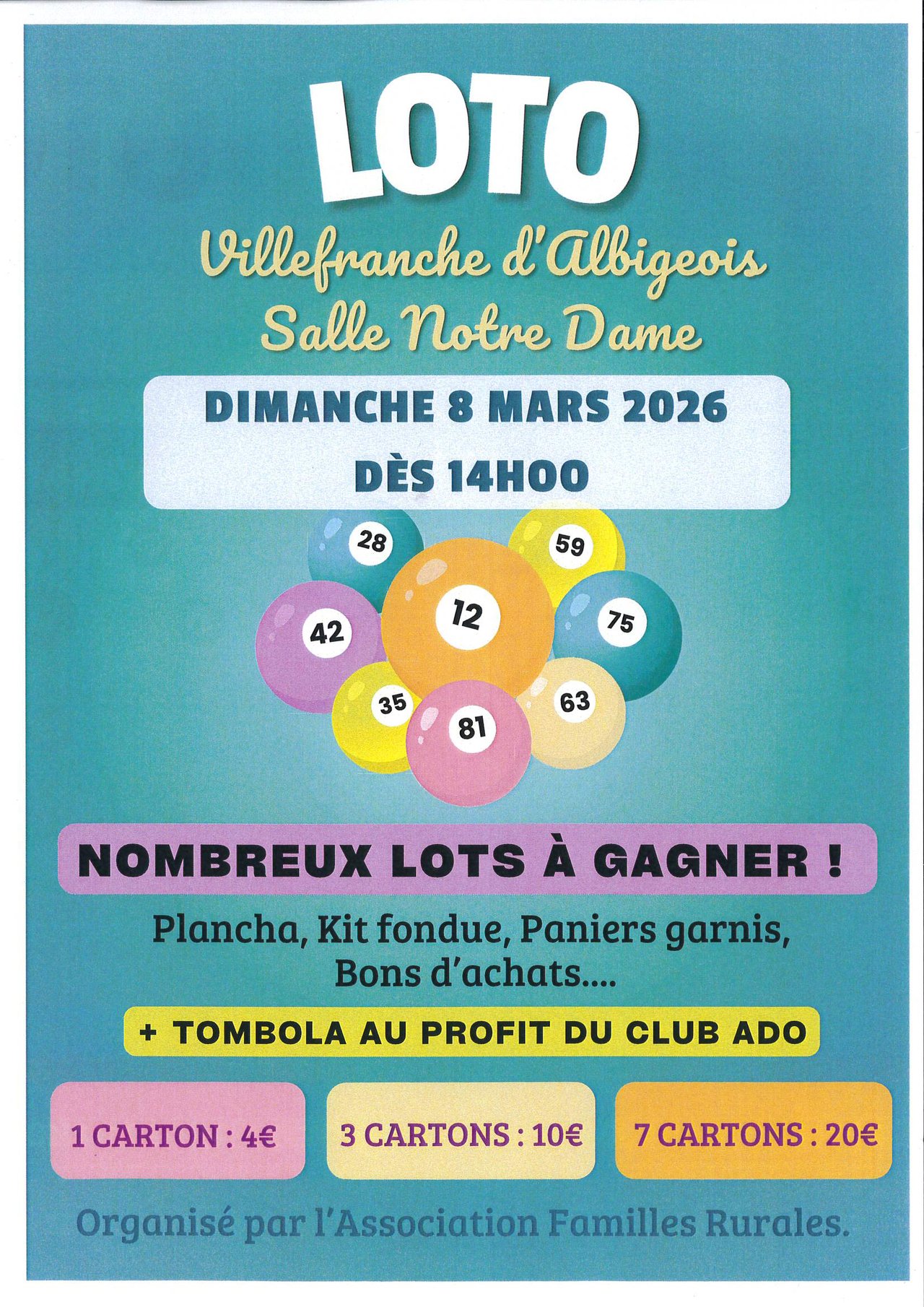 L’association Familles Rurales organise son traditionnel loto
