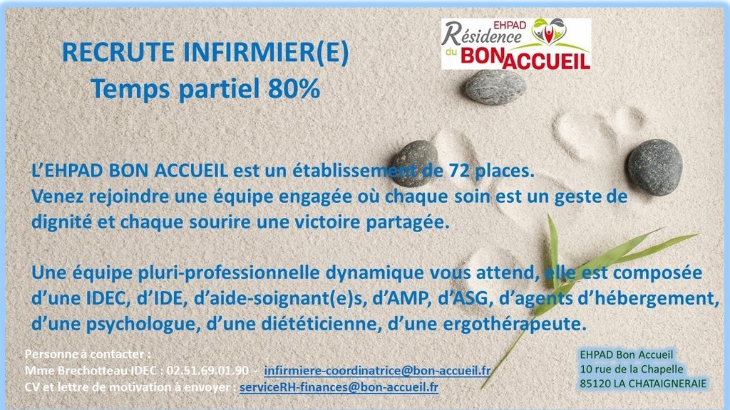 Contact : infirmiere-coordinatrice@bon-accueil.fr ou servicerh-finances@bon-accueil.fr