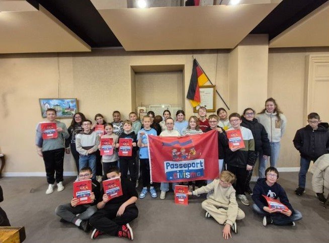 🔹 Comme tous les ans et dans le cadre du Passeport du Civisme les élèves de CM2 des écoles Sainte-Marie et Élie de Sayvre sont venus en mairie pour échanger. Cette initiative s’inscrit plus particulièrement dans l’action intitulée « Connaître les valeurs de la République » 🇫🇷, qui vise à sensibiliser les jeunes citoyens 👧👦 au fonctionnement des institutions et aux principes fondamentaux de la vie démocratique.