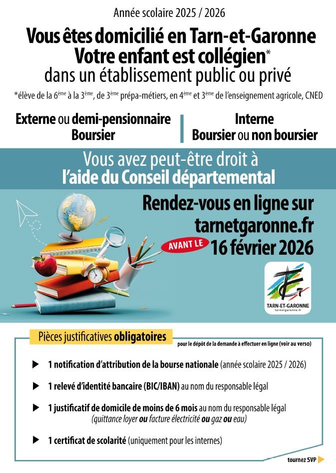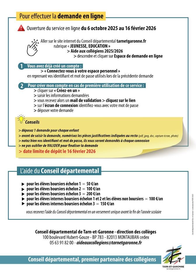 ℹ️ Pour plus d’informations, consultez la rubrique “Aide aux collégiens” sur le site du Conseil départemental de Tarn-et-Garonne https://www.tarnetgaronne.fr/aide-aux-collegiens.