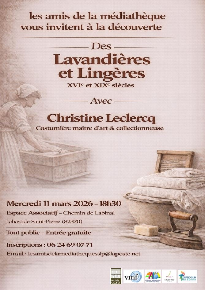 Les Amis de la Médiatèque vous invitent à la rencontre de Christine Leclercq, costumière maître d’art et collectionneuse, membre des amis du Musée CALBET à Grisolles.