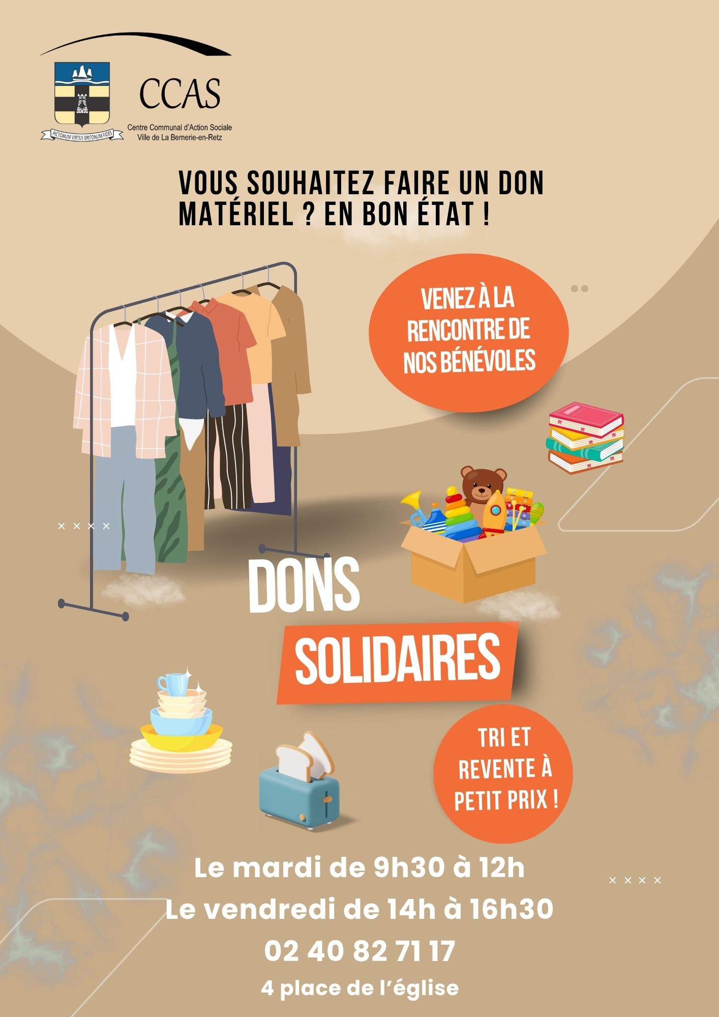 Rappel : le vestiaire du CCAS de La Bernerie-en-Retz n’est ni un dépotoir ni une déchetterie. Nous rappelons que des bénévoles vous accueillent :