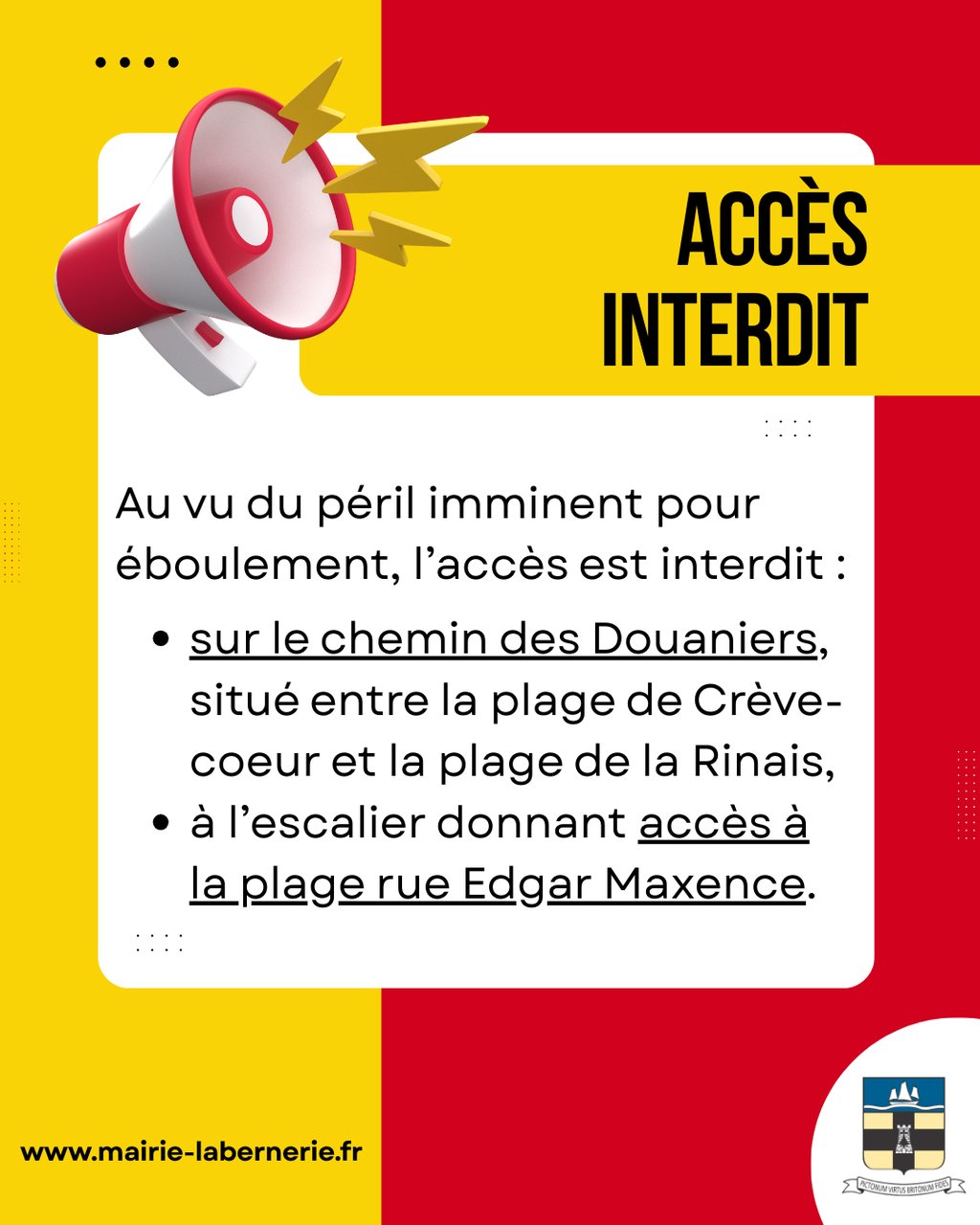 Au vu des périls imminents d'éboulement et pour la sécurité de tous, l'accès est interdit :