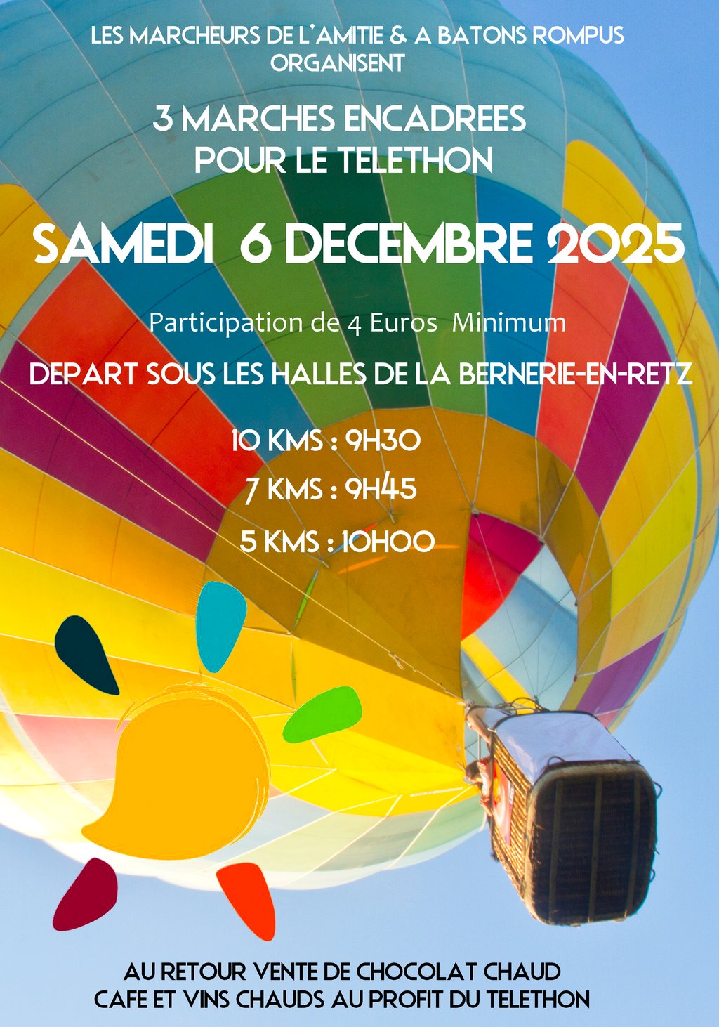 Les associations de marches : Les Marcheurs de l’Amitié de La Bernerie et Batons Rompus des Moutiers vous proposent trois marches encadrées, à partir de la Halle.