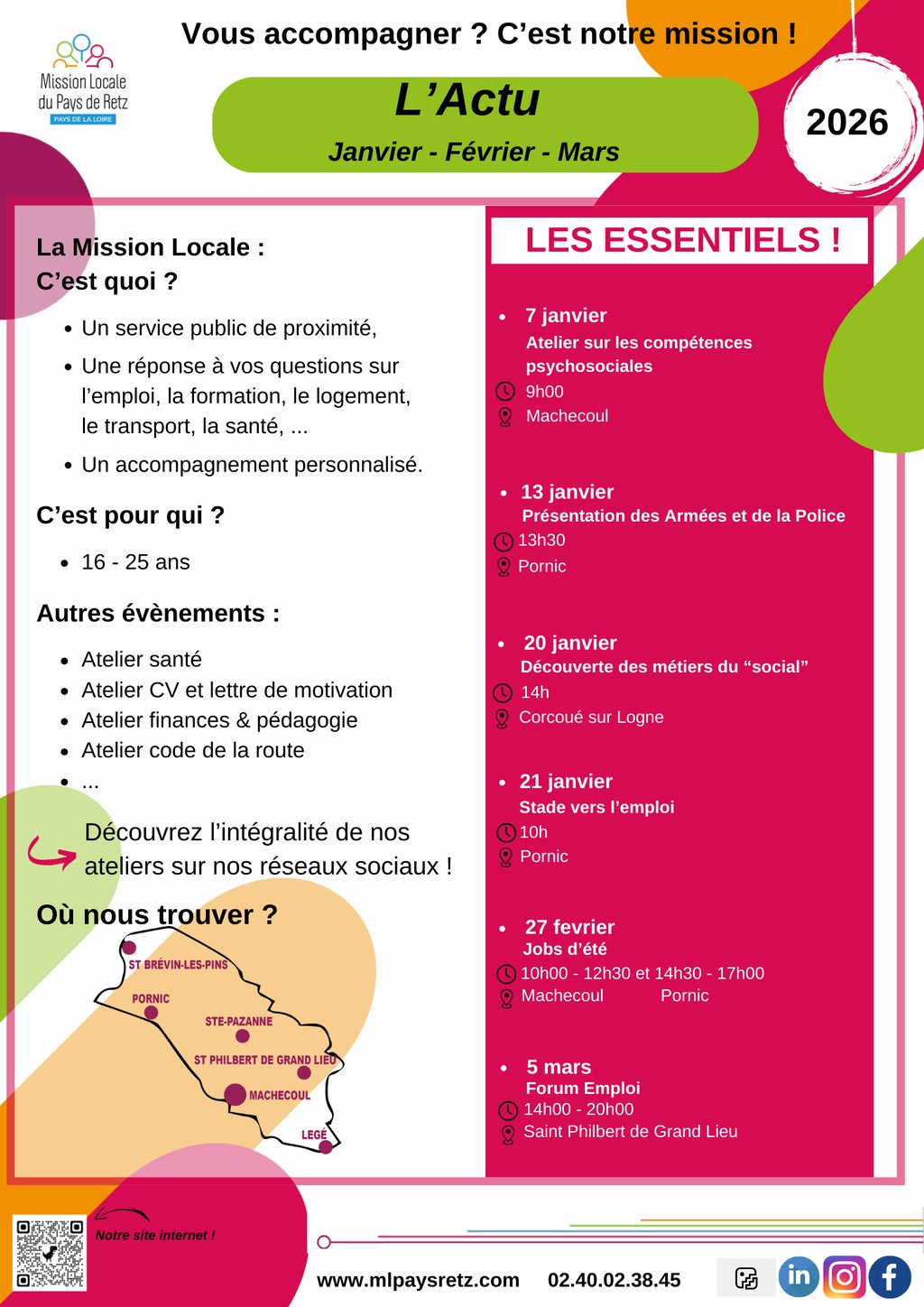 Veuillez trouver ci-joint l’actualité de la Mission Locale du Pays de Retz destinée aux jeunes de 16 à 25 ans.