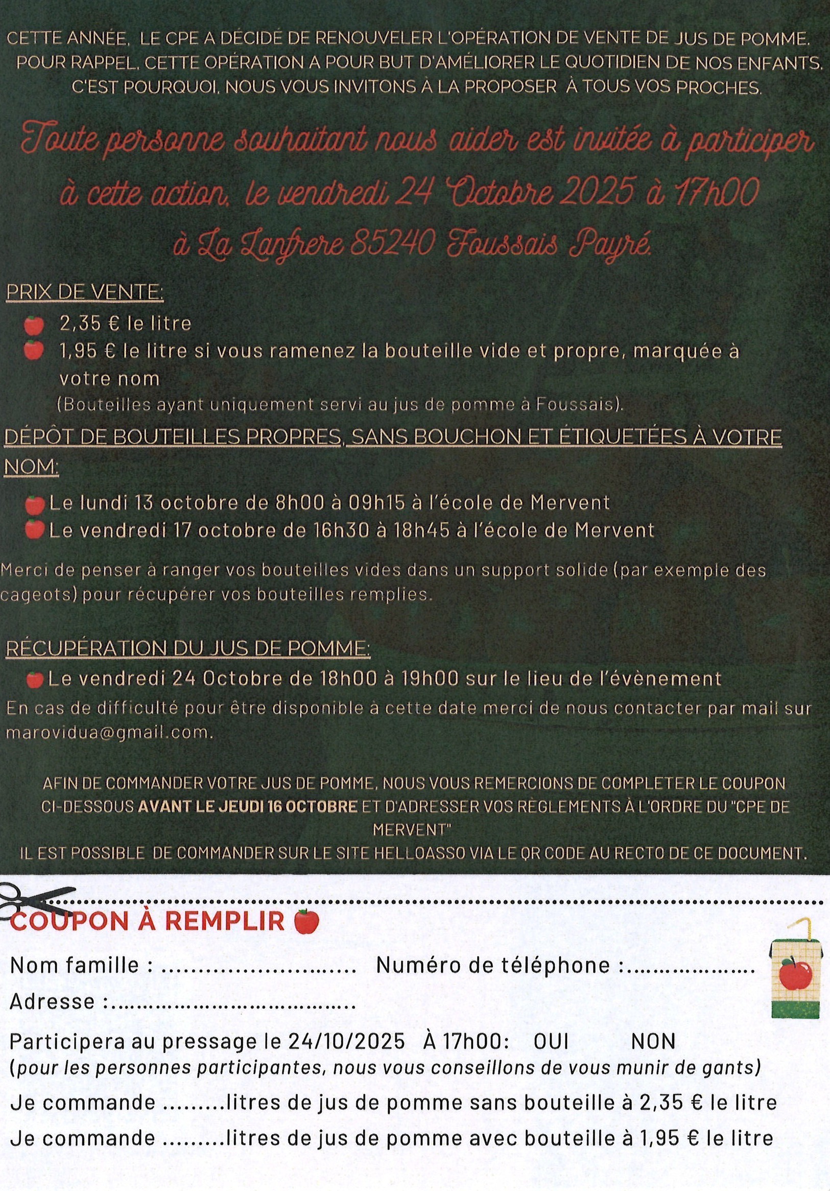 Cette année, le CPE a décidé de renouveler l'opération de vente de jus de pomme.