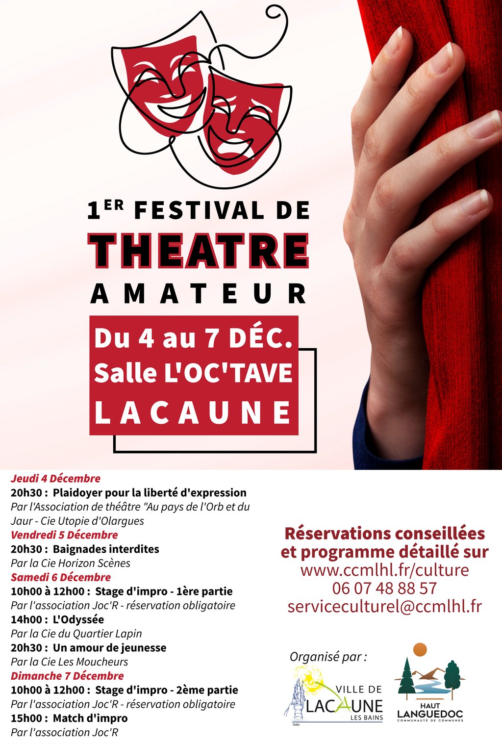 🎉 Envie d’un week-end cocasse, poétique… et imprévisible ? Rejoignez-nous du 4 au 7 décembre 2025 à Oc'tave (Lacaune) pour le Festival de théâtre amateur — 4 jours de rires, d’émotions, de surprises et d’impros à gogo !