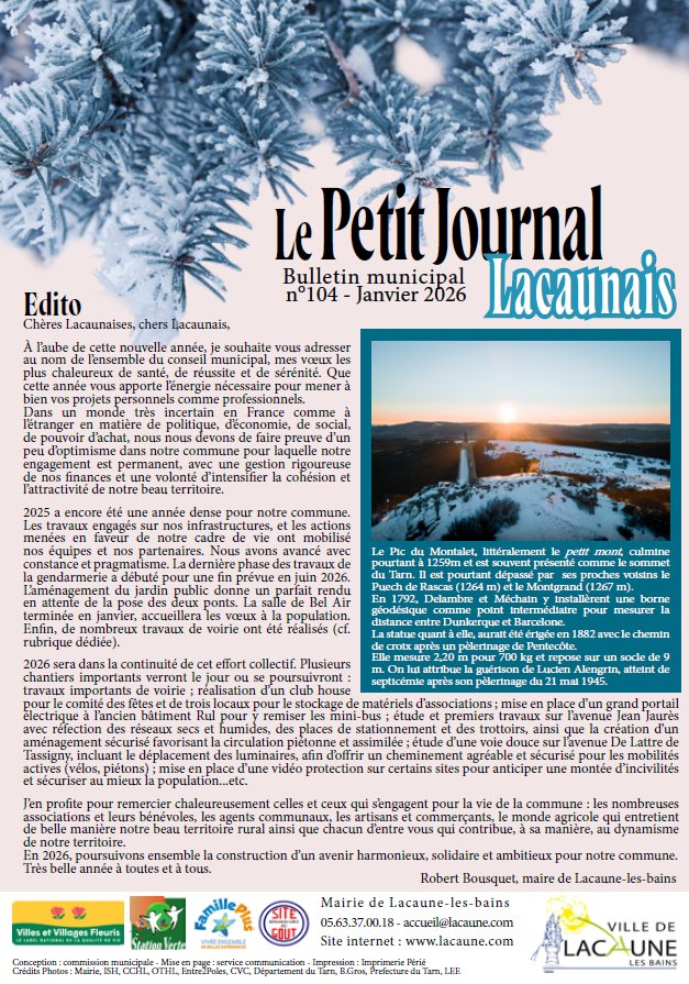 Il est arrivé ! Retrouvez-le dans vos boîtes aux lettres ou téléchargez-le sur https://www.lacaune.com/vie-municipale/info-municipale/bulletins-municipaux/