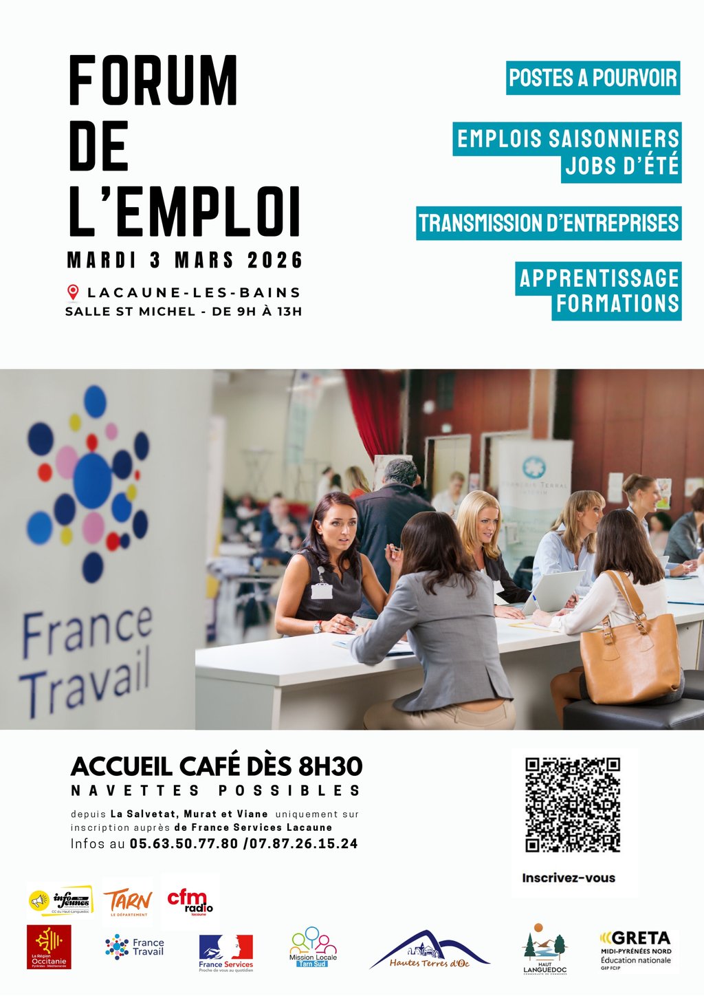 👉 Inscriptions conseillées avant le 13 février 2026 auprès de France Services Lacaune, ou via la plateforme MEE Pro – Forum de l’emploi et de l’orientation pour les employeurs.