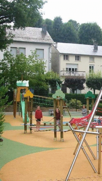 Petit arbre , échelle vertivale, cabane, filet araignée, pont de corde, filet oblique, toboggan, un manège et une pyramide sont à ta disposition pour passer une bonne après midi.